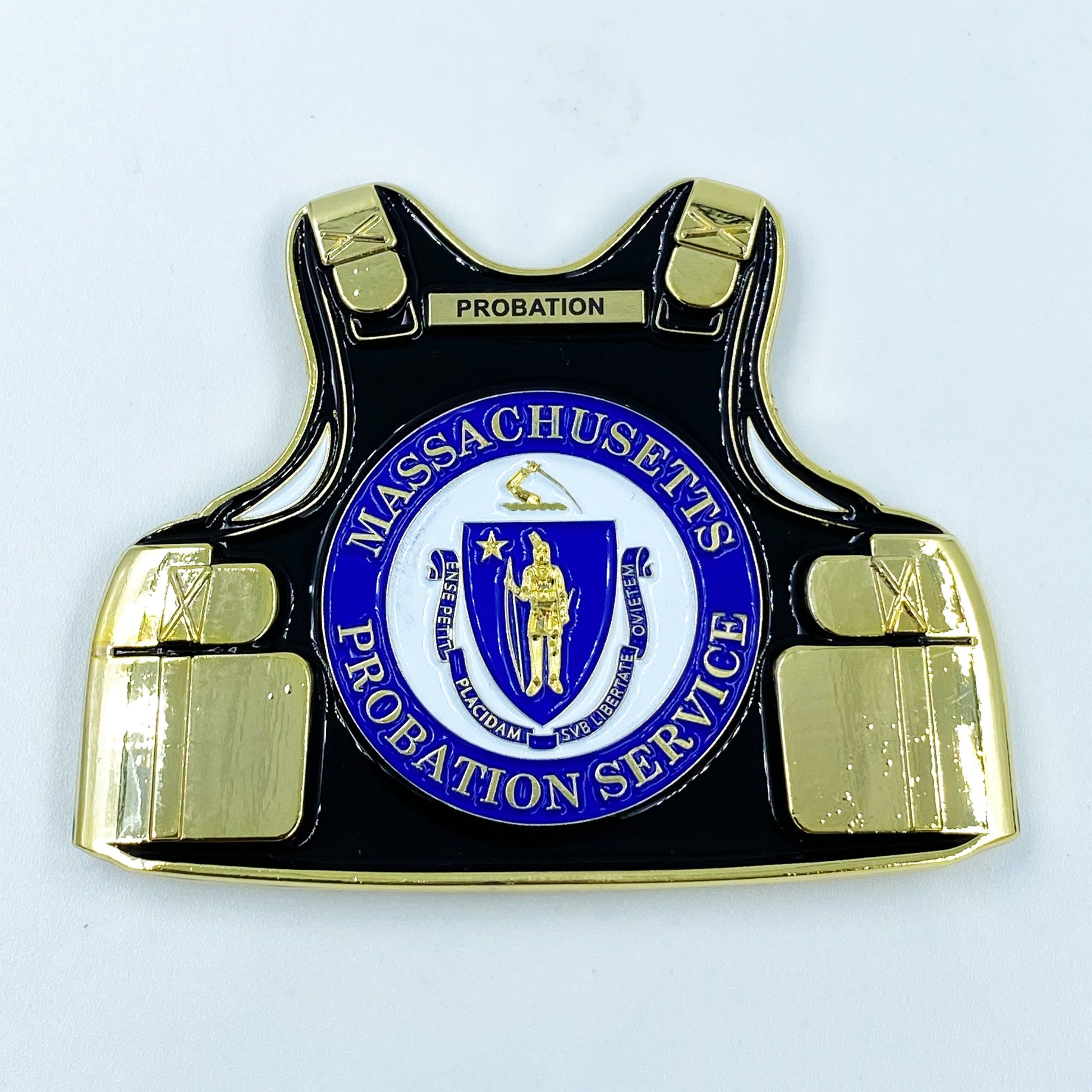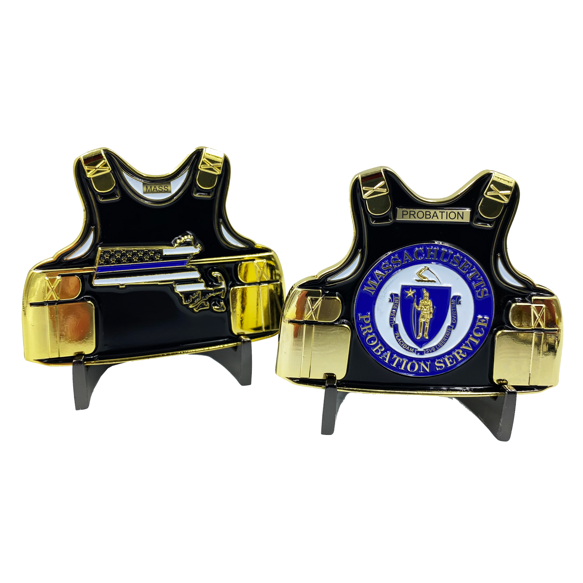CL-AA Massachusetts Probation LEO Thin Blue Line Police Body Armor State Flag Challenge Coins